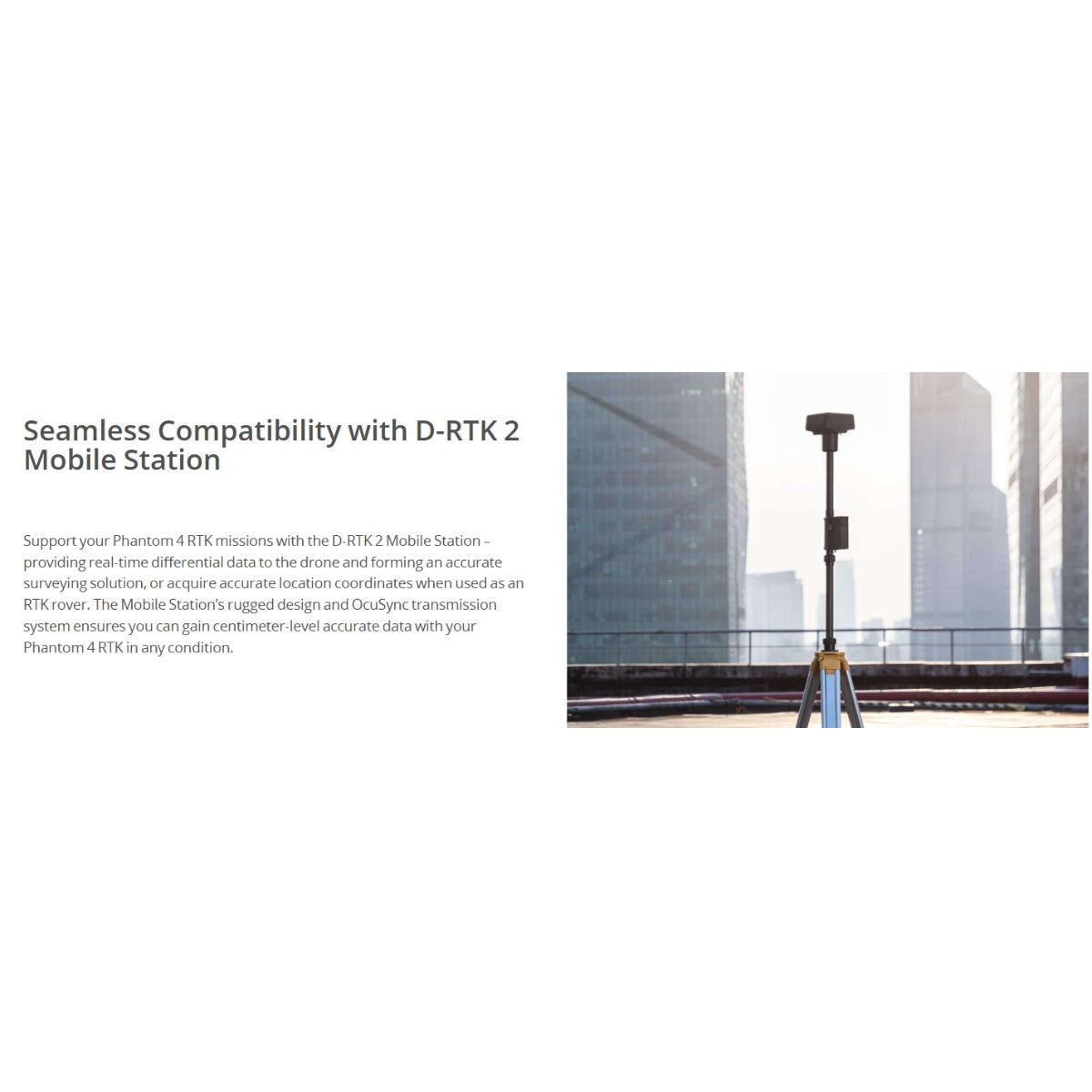 With a flight time of up to 30 minutes and a range of up to 7 kilometers, the Phantom 4 RTK allows you to cover large areas efficiently. This extended operational capacity minimizes downtime and maximizes productivity.